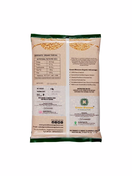 Organic Toor Dal /Arhar Dal / Split Pigeon Pea - 500g ( Pack of 1) I Green Blossom is a reliable choice for buyers looking for consistent quality and standardized specifications. It is ideal for bulk buyers and international clients across the pulses /lentils segment.